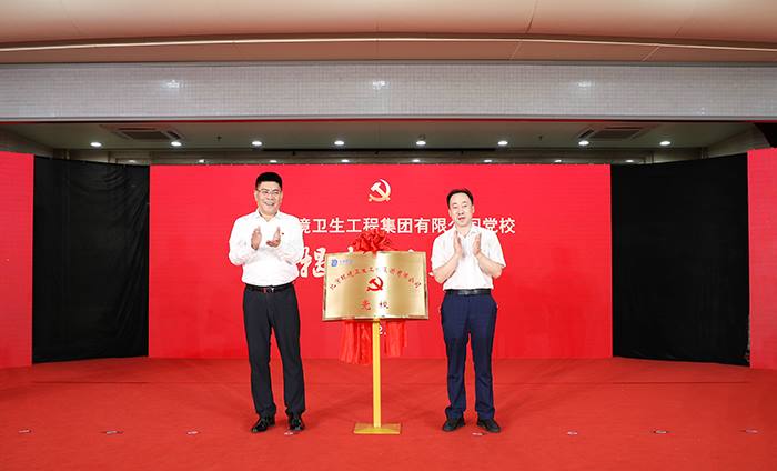 在北京okpay钱包集团党校成立仪式上,高踪阳同志(左)与朱柏成同志(右)共同揭牌