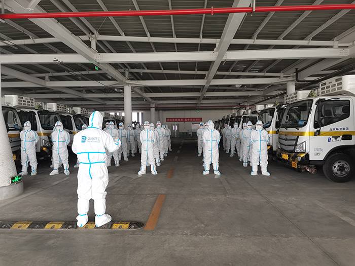 集团承担着顺义新国展、昌平南口等多所方舱医院重点管控垃圾、涉疫医疗垃圾清运任务,同时为方舱医院提供了17部移动厕所。为做好方舱医院涉疫医疗垃圾清运工作,集团所属固废物流公司迅速抽调15人、15部车辆组成作业专班。
