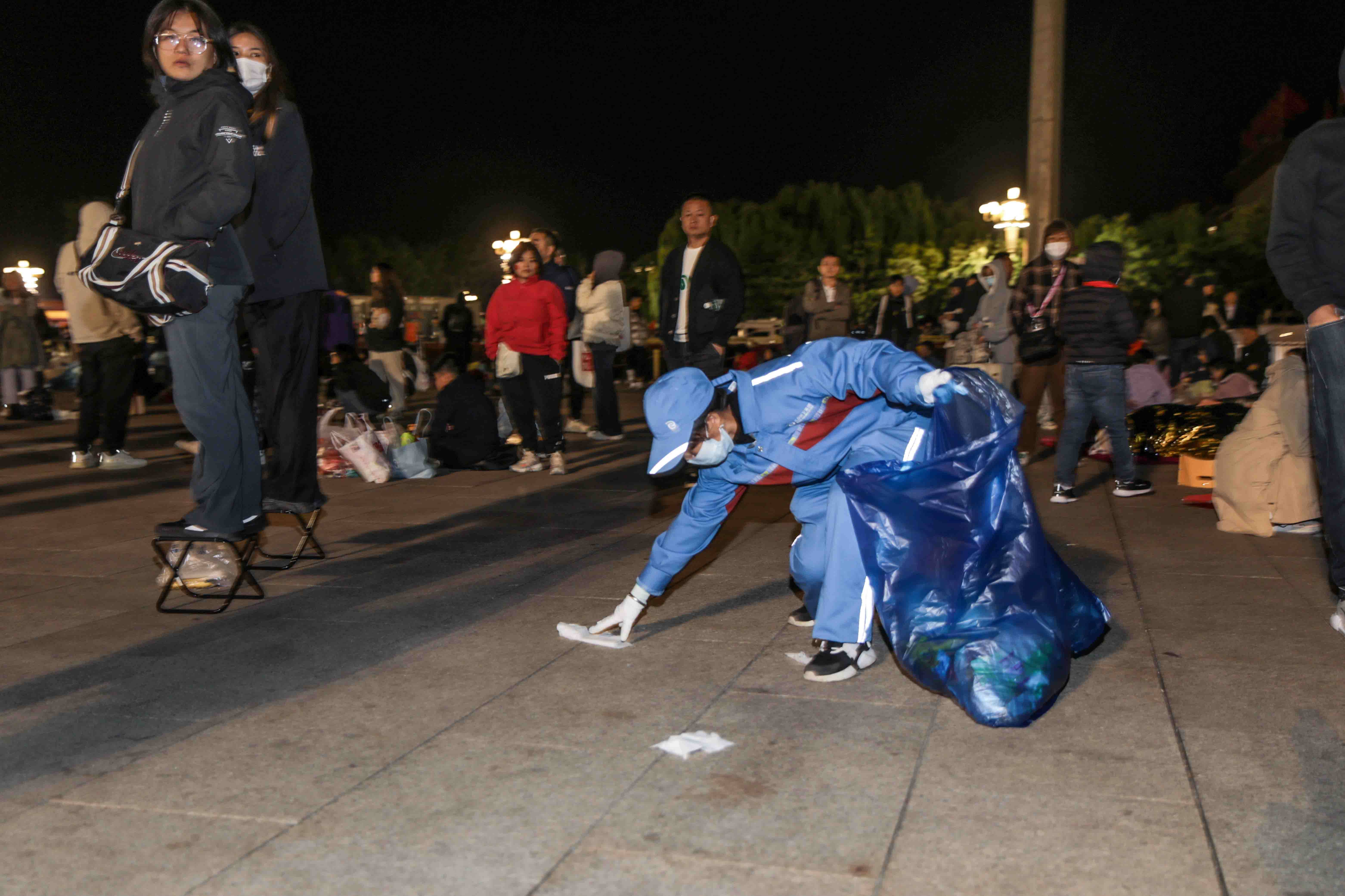 10月1日清晨,疫情过后,天安门广场迎来客流最高峰,30.2万名游客齐聚广场,观看升旗仪式,共同庆祝新中国74周年华诞。集团所属北京机扫公司合理增派人员、车辆、物资,提高巡回作业频次,缩短垃圾落地时间。“今年游客比往年多,垃圾随时随地产生,我们保洁人员就主动往人多的地方去收集。”集团所属北京机扫公司天安门环境服务中心副经理蔡凤辉说,“我们的保洁员就是移动的果皮箱,走到哪里就收到哪里,游客看到我们也能主动投放。”蔡凤辉和她630名同事一起努力的目标,就是让游客在天安门广场可“席地而坐”,她们中的很多人一天走路超过4万步。