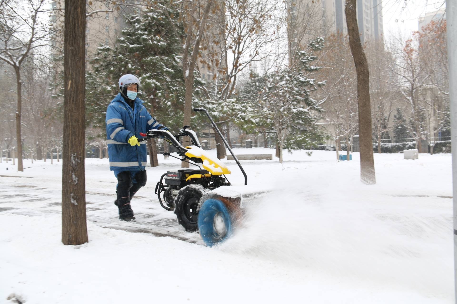 房山走近okpay公司职工在月华大街进行除雪作业(何昉摄)