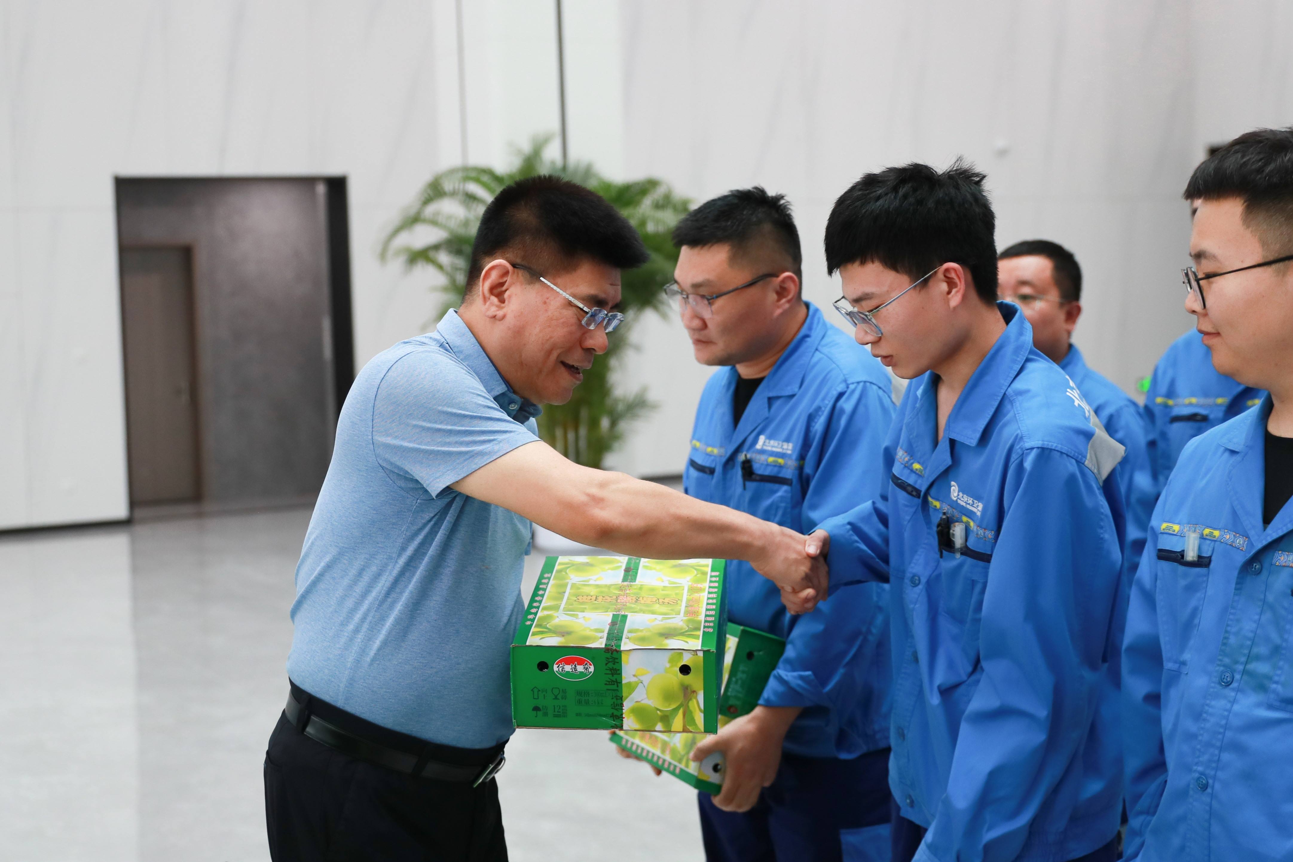 金善文同志向在夏日高温情况下坚守在岗位一线的广大okpay钱包职工致以诚挚的问候。他表示,安定循环经济园区环境干净整洁,非常现代化。这座大型okpay钱包设施的建设和投运离不开广大走近okpay人的辛勤付出,大家辛苦了。金善文同志向现场的okpay钱包职工代表送上饮料、矿泉水等防暑降温物品,叮嘱大家提高自我防护意识,做好劳动保护工作。